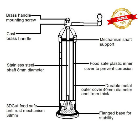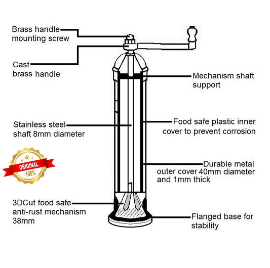 Greek European Genuine Cast brass pepper Mill #006 5,3″
