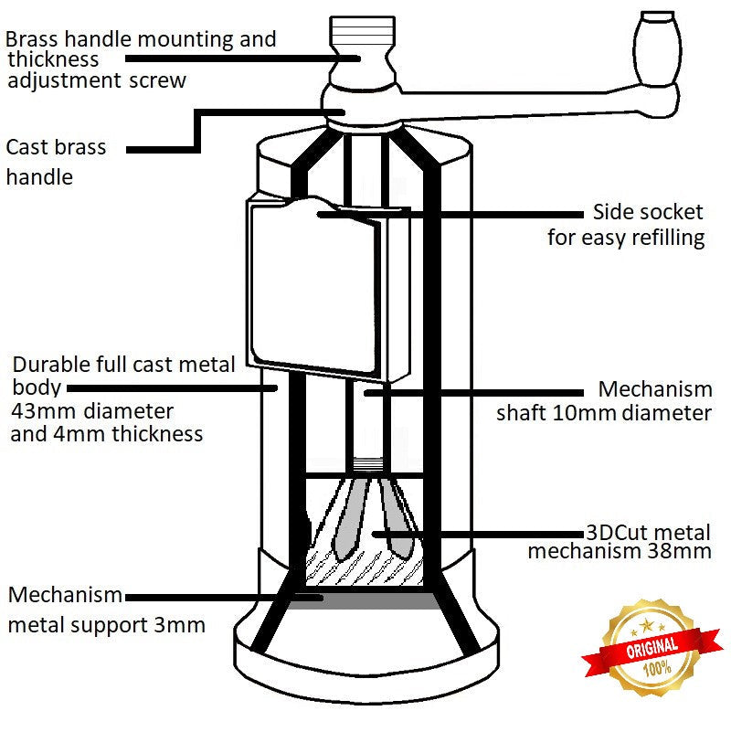 Adjustable Metal Grinding Mechanism: Ranges from fine to coarse settings.