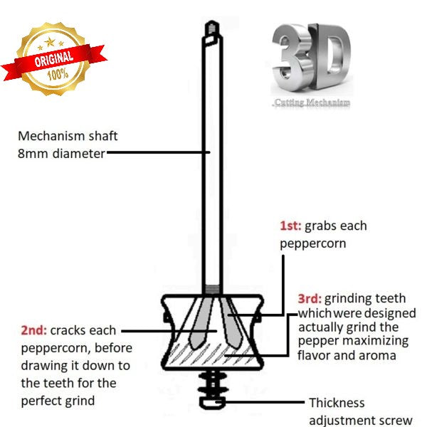 Alexander pepper mills are the original inspiration for the term "pepper grinder" because these mills actually grind the pepper rather than merely crushing it. Traditional pepper mills only smash the peppercorns, which significantly limits the release of flavor. The Alexander mill uses a double-row of grinders to catch and crack each peppercorn before drawing it down to the teeth for an optimal grind.