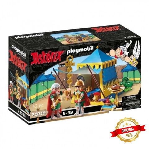 One of Obelix's favourite pastimes is fighting with Romans. As soon as the Romans venture out of one of their camps, they are easy prey for the big Gaul. But at the moment, the two generals Crismus Bonus and Marcus Ginantonicus are discussing a new strategy to drive the indomitable Gauls out of their village. They are sitting in their richly furnished leader's tent, enjoying a piece of meat and a glass of wine and thinking about what to do next. The PLAYMOBIL set includes the generals Crismus Bonus and Marcus Ginantonicus in armour with cape and helmet, a general's tent with carpet, bed, stool and chair and many other extras for exciting adventures. Features characters Crismus Bonus and Marcus Ginantonicus