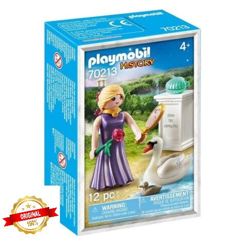 The set includes the goddess Aphrodite with her golden mirror, rose, and swan, along with a column with an inscription and a shell.
