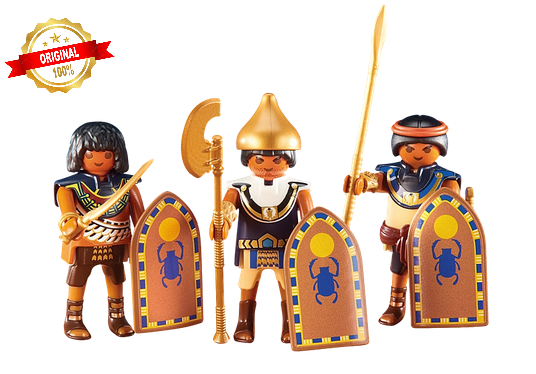Figures: 3 Egyptian soldiers. Accessories: 3 shields, 1 spear, 1 sabre, 1 sword, and 1 loincloth.