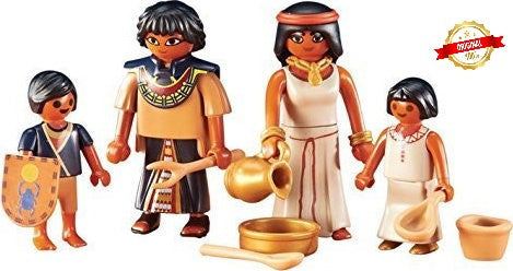 Figures: Egyptian family - 1 man, 1 woman, 1 boy, and 1 girl. Accessories: 1 sign, 2 spoons, 1 fork, 1 jug, 1 chain, and 1 bowl.