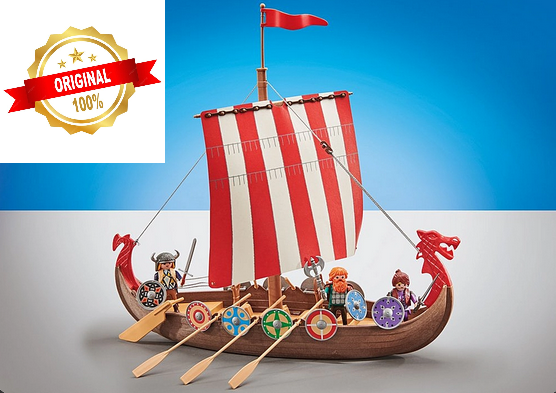 Floats and can be upgraded with an underwater motor. The rudder and sails are movable. Foot clamps ensure the Vikings stay securely in place.
